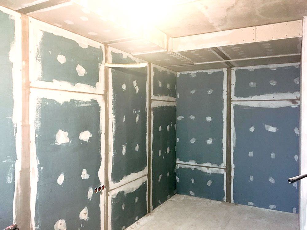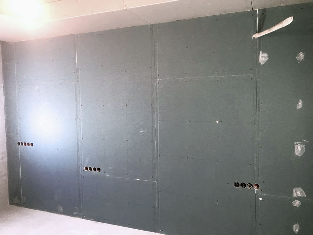 Были звукоизолированны стены со всеми соседями по этажу. Достигнутутый результат - это Rw 61 дБ (по проведенным тестам после монтажа системы Amber SoundStop membrane).